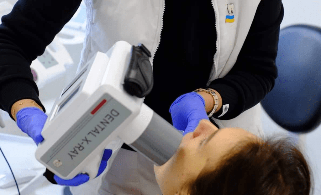 диагностические снимки зубов на визиографе — низкодозовом рентген-аппарате с выведением изображения на монитор